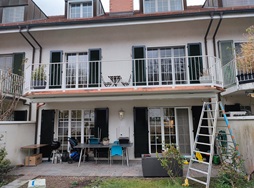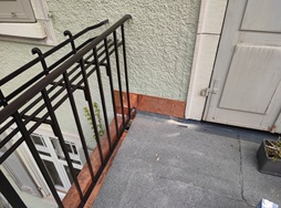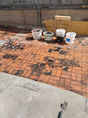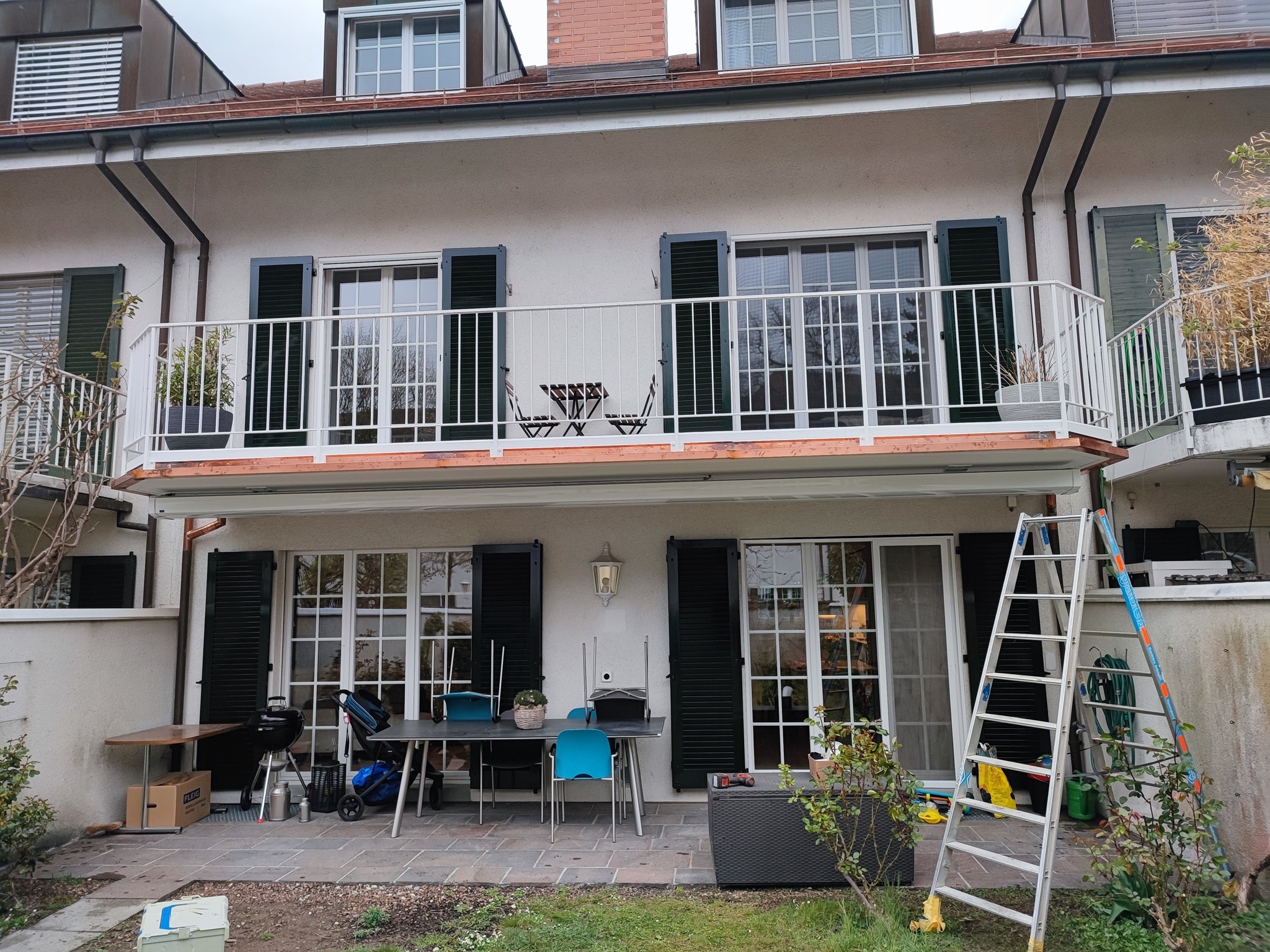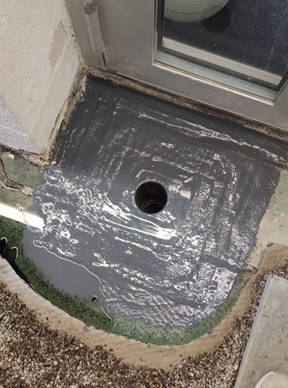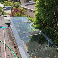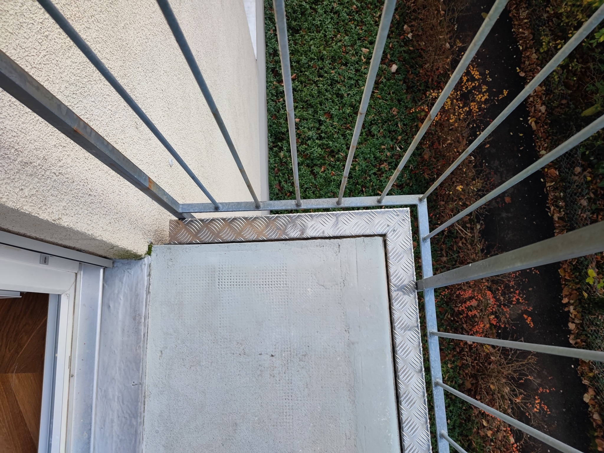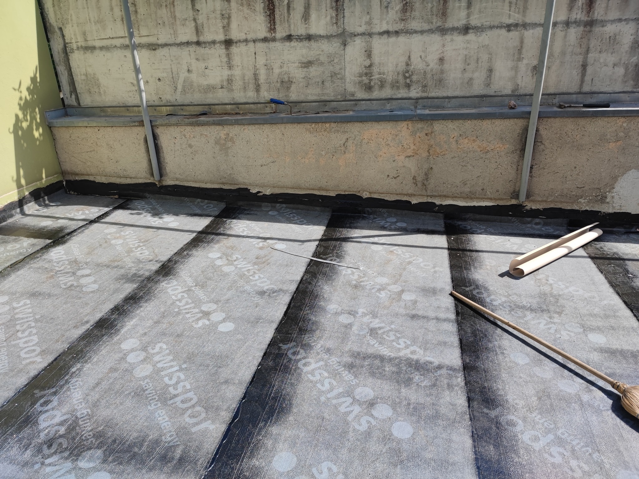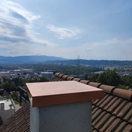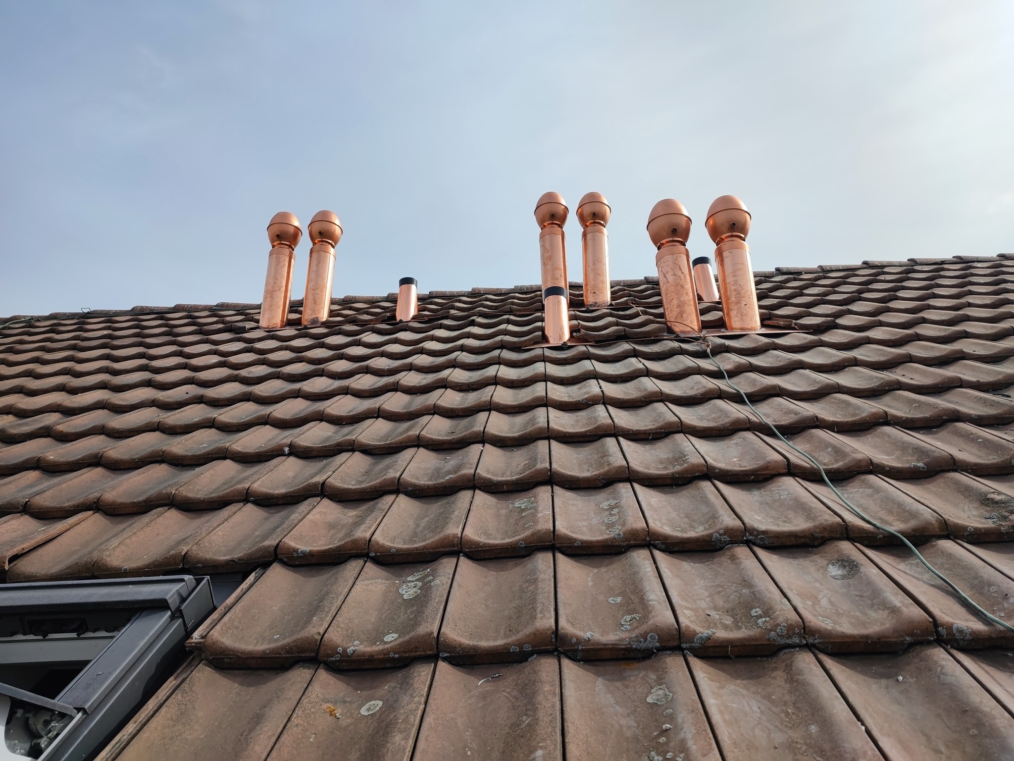Flachdach Terrasse mit Kupfer Anschlüssen und Gartenplatten