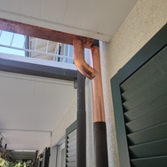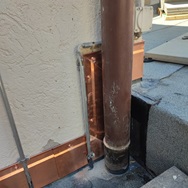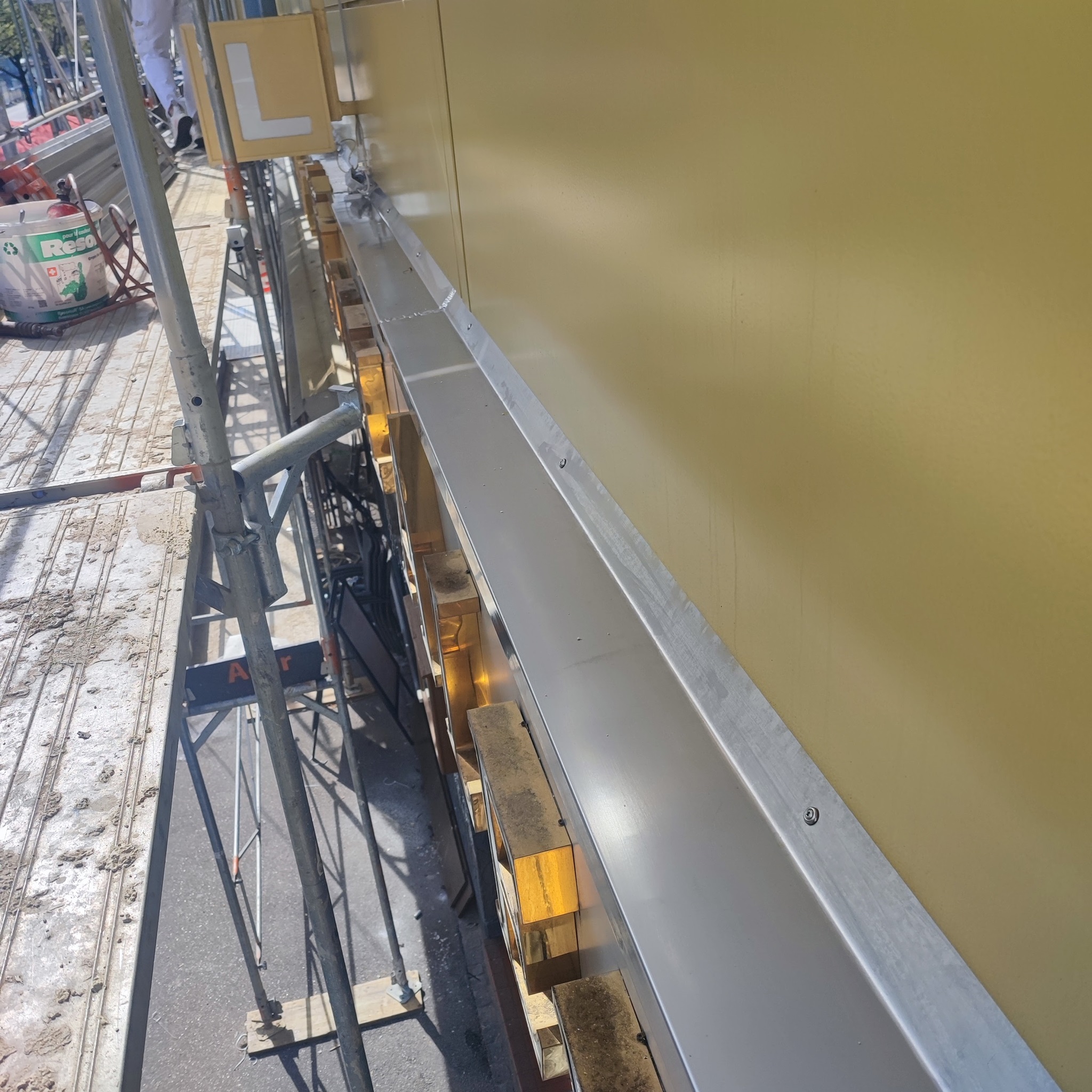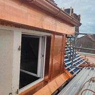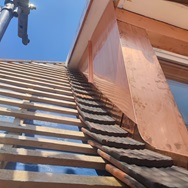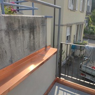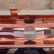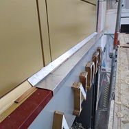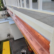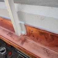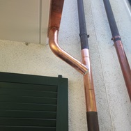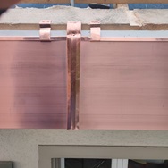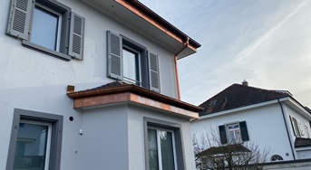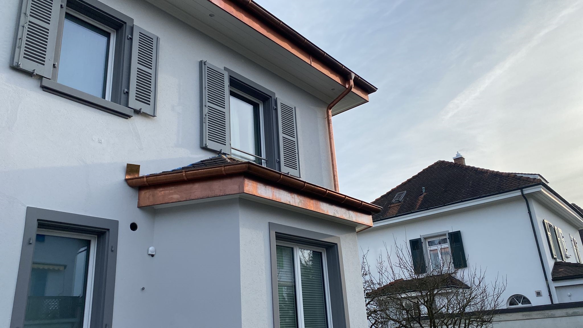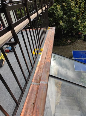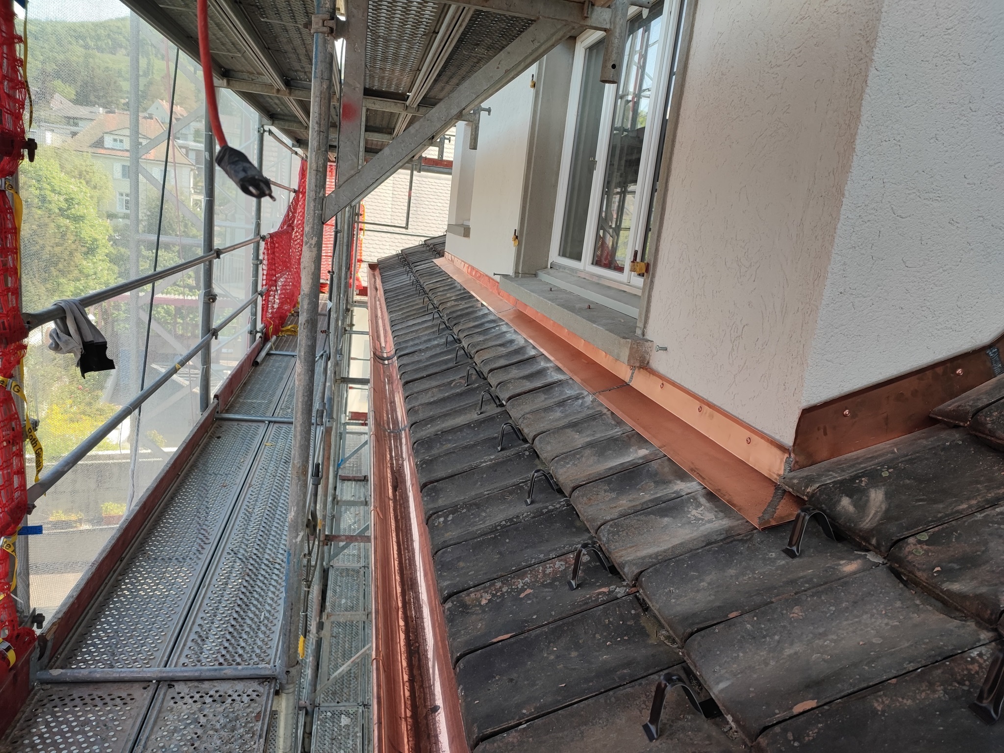 Gehrungsschnitt Rinne und Einlaufblech Kupfer