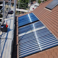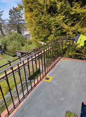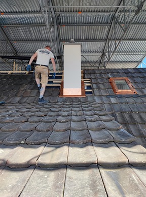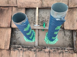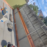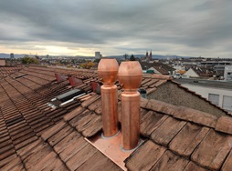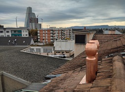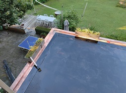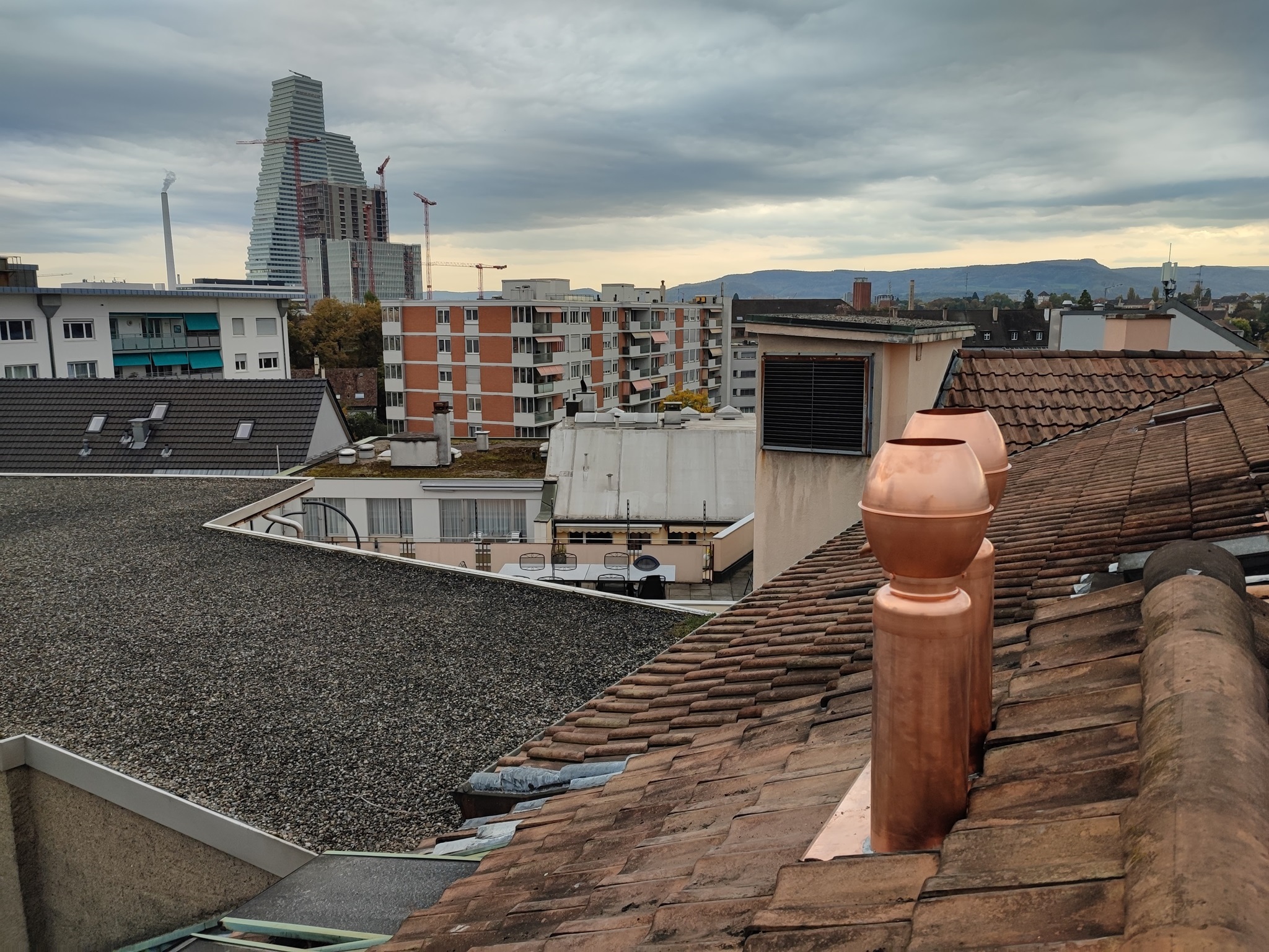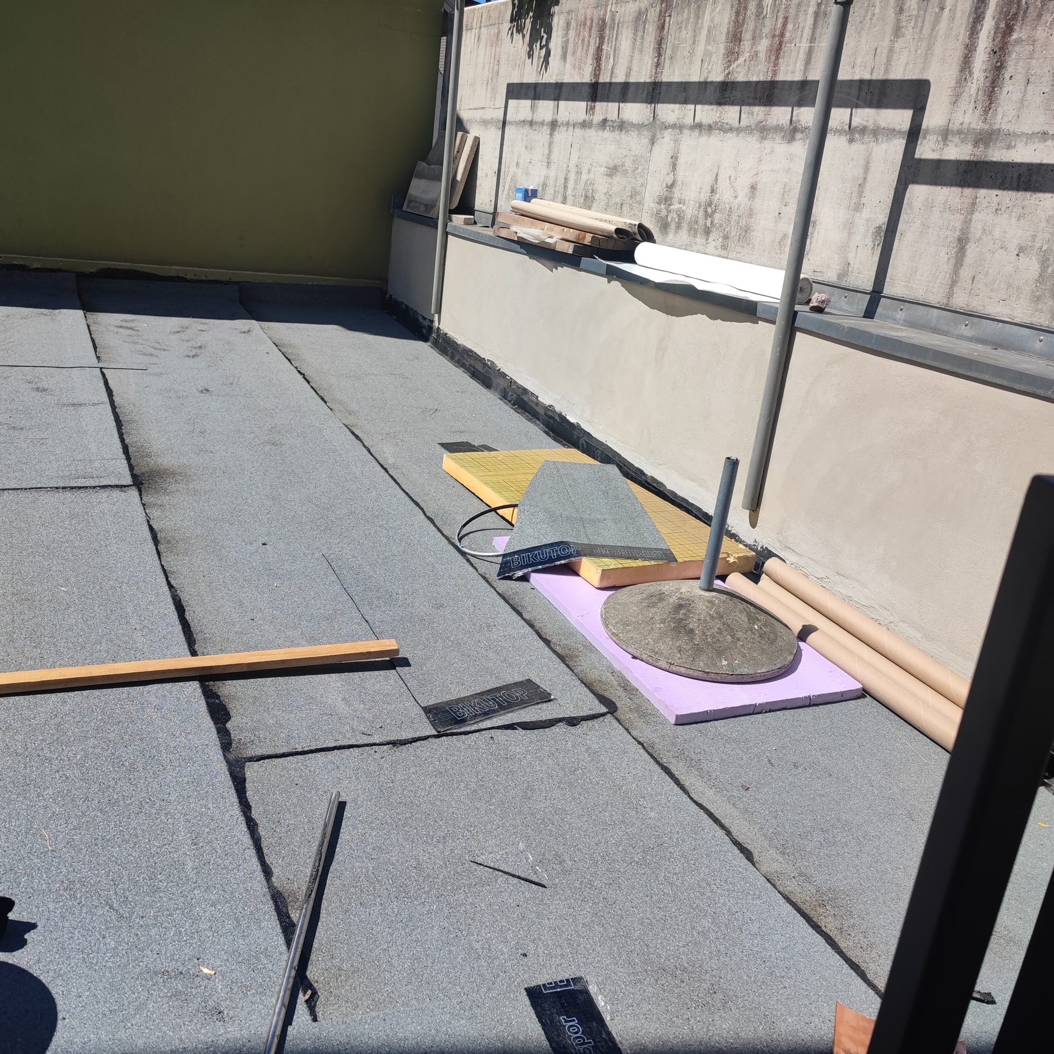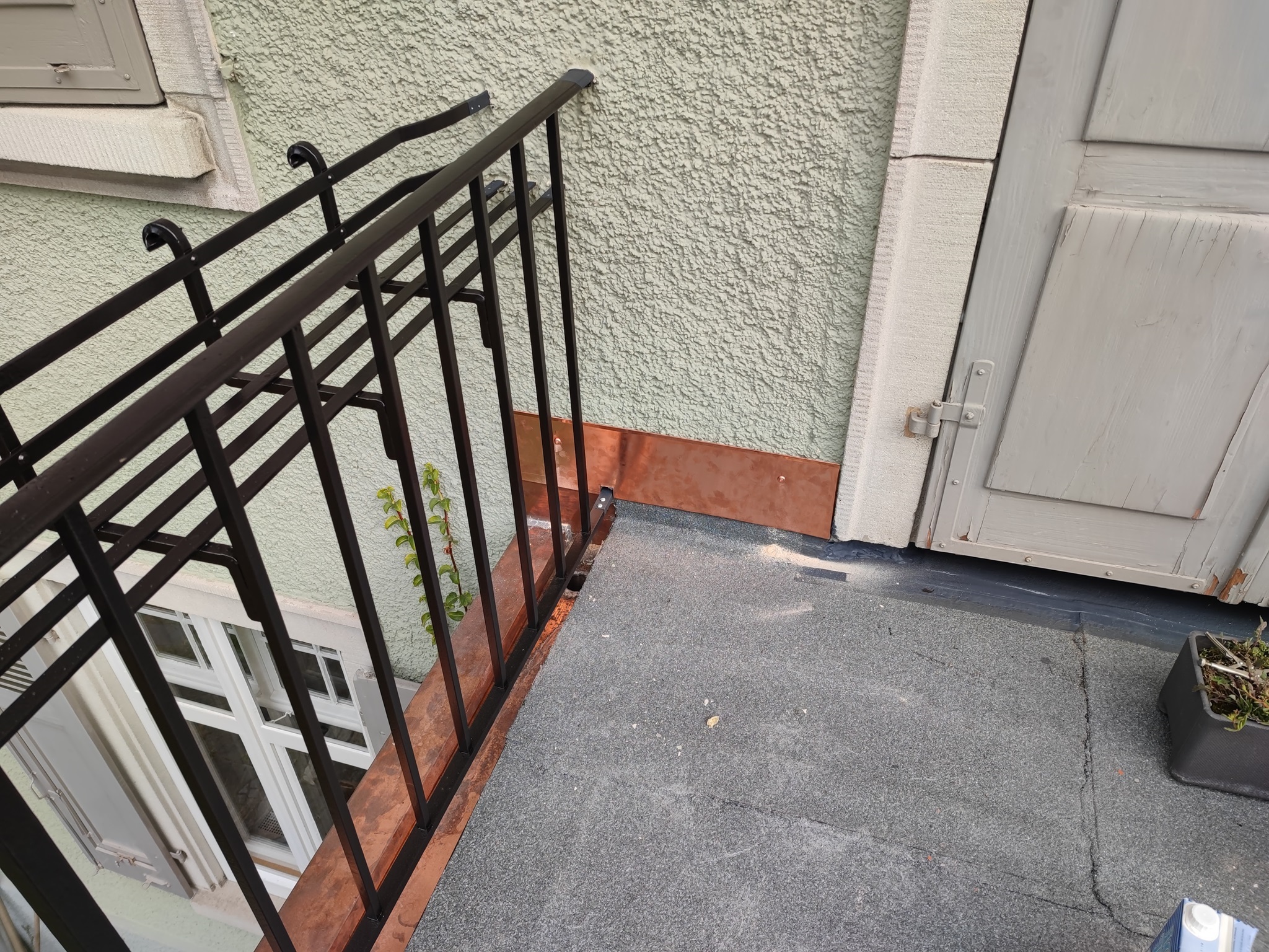 Flachdach Terrasse mit Kupfer Anschlüssen und Gartenplatten
