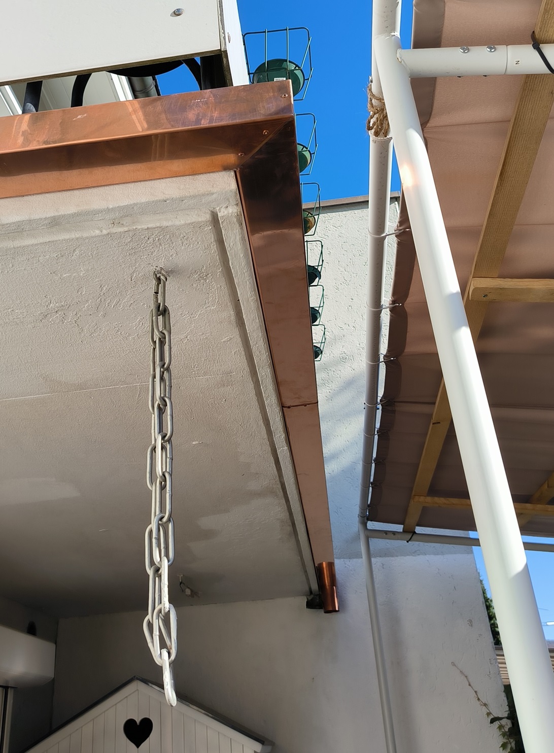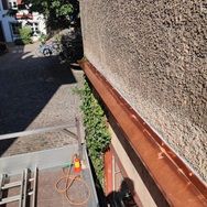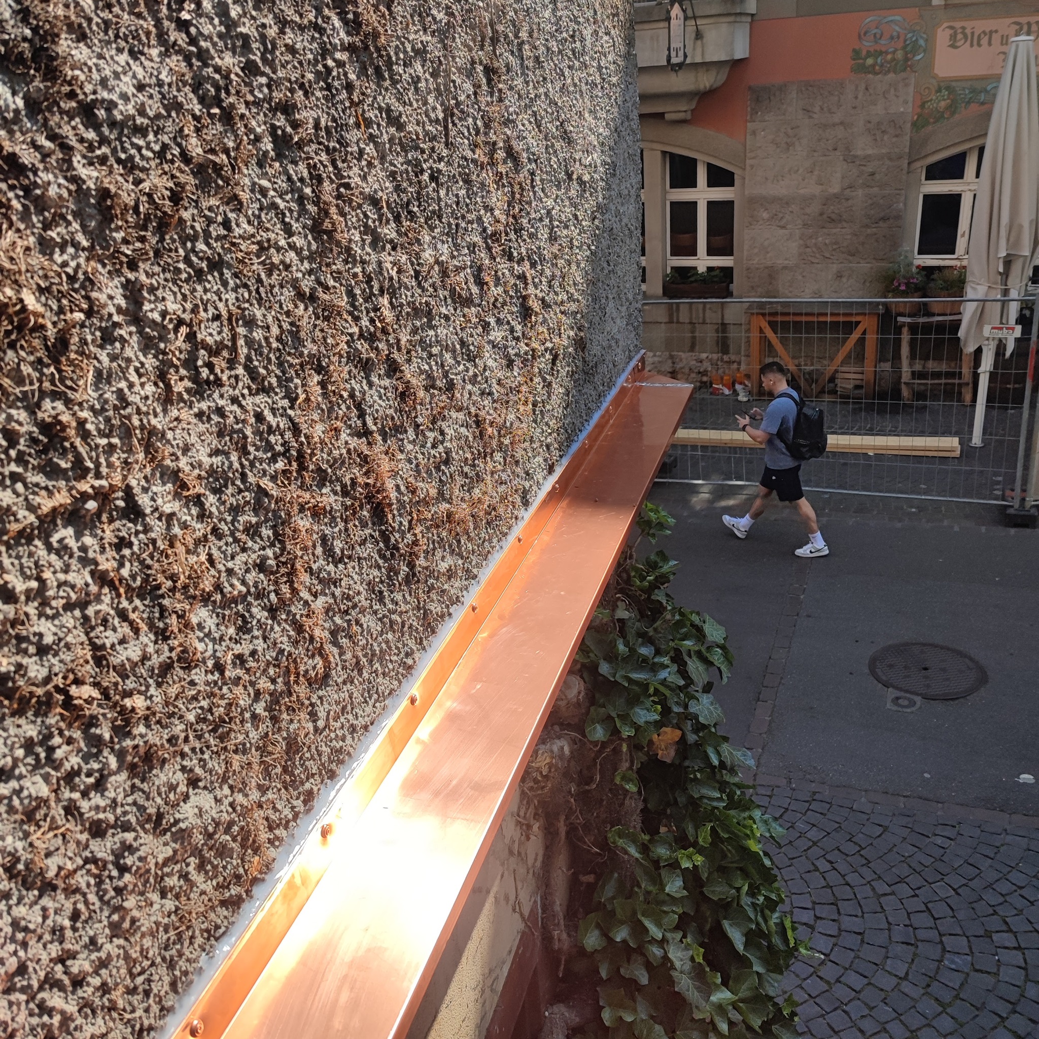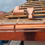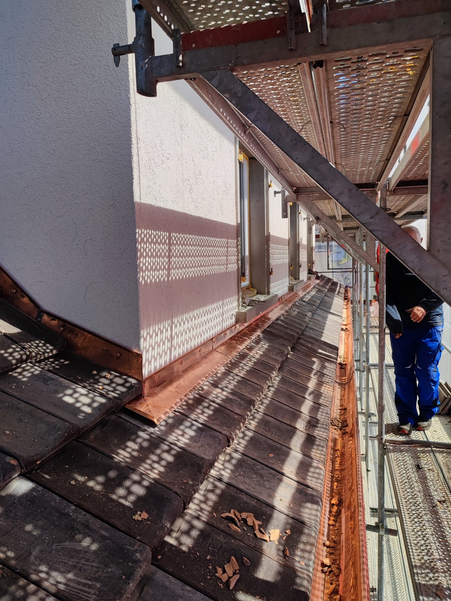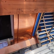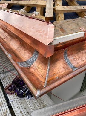 Gehrungsschnitt Rinne und Einlaufblech Kupfer