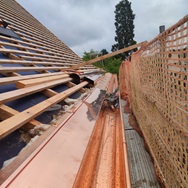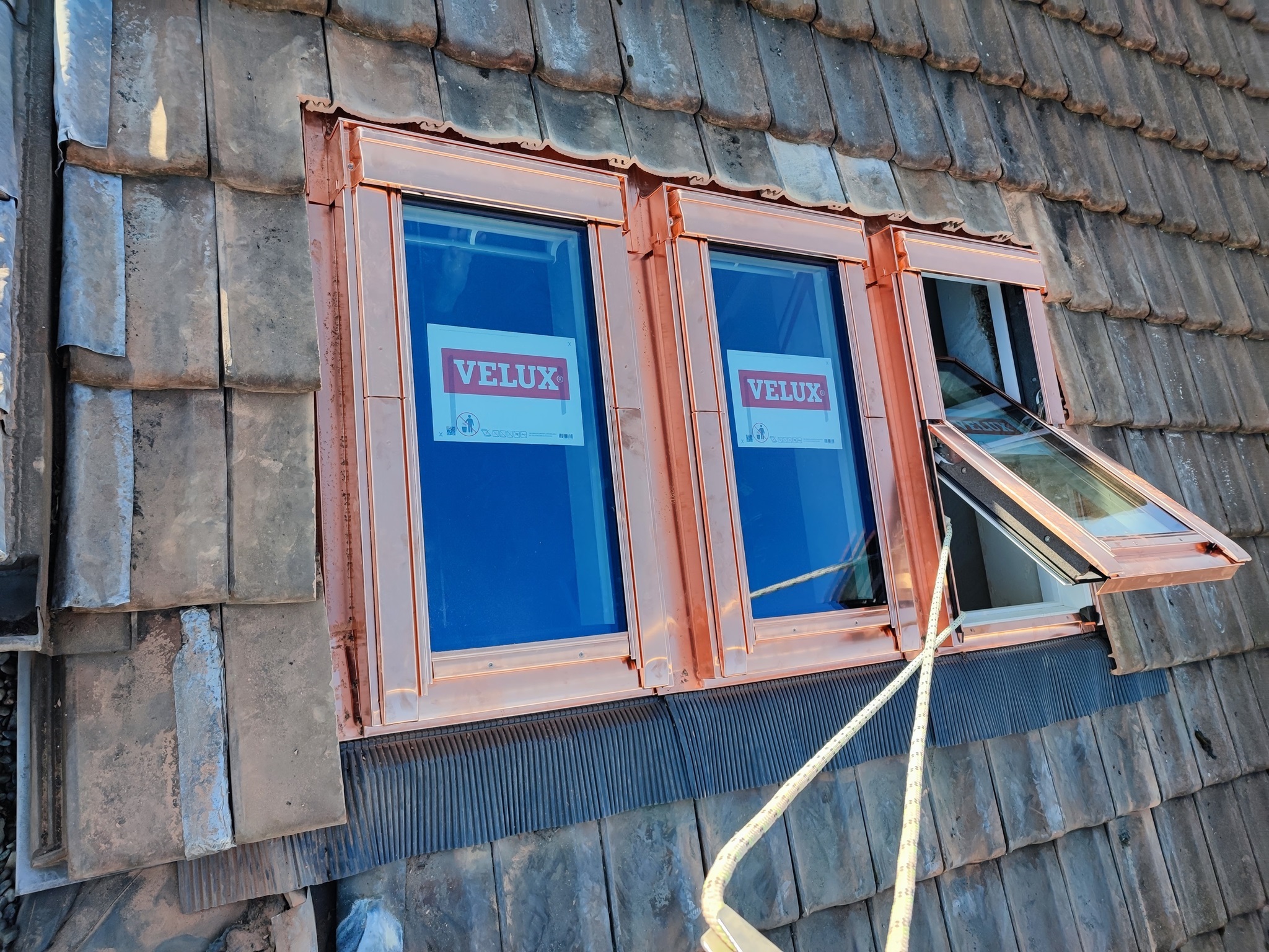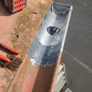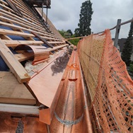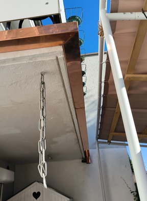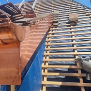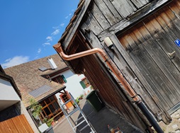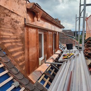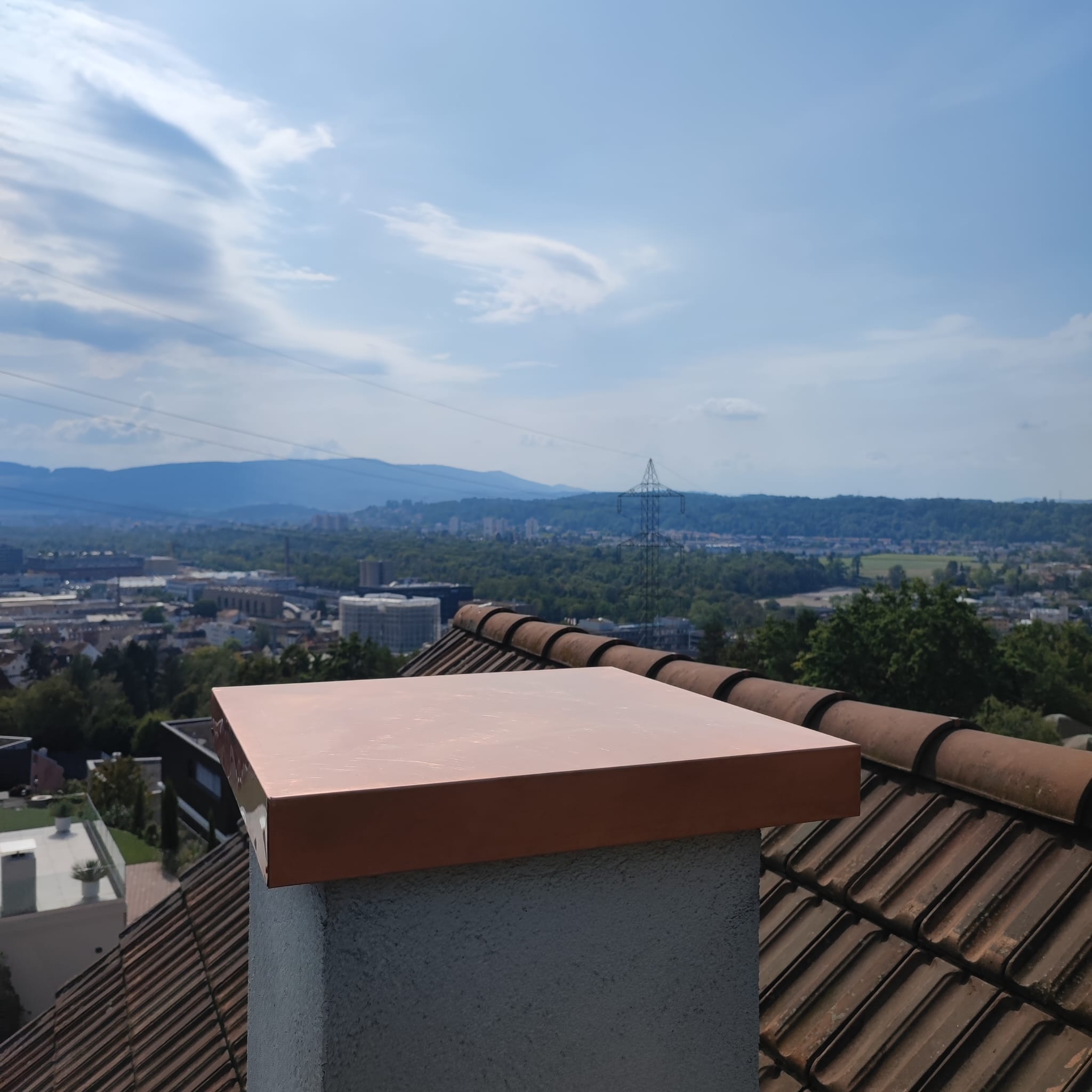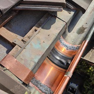 Gehrungsschnitt Rinne und Einlaufblech Kupfer